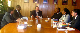 Guillermo Arthur, presidente de FIAP junto a la delegación nigeriana y el Sr. Juan Gutiérrez, de Sonda. |